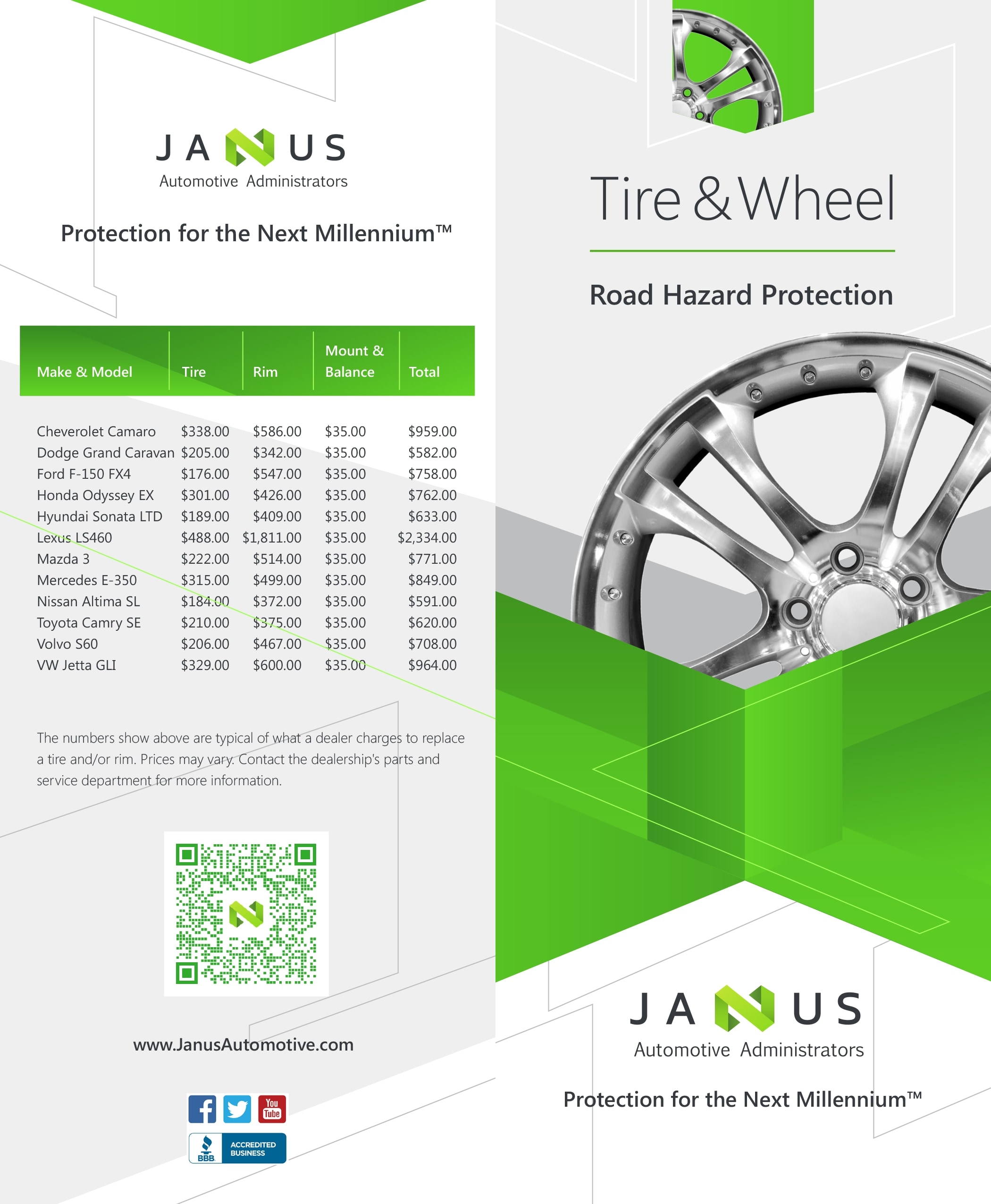 The roads can be full of unwelcome surprises that can cause costly damage to your tires and wheels. Our Tire and Wheel Protection plans cover unexpected mishaps and the services it takes to bounce back from them.